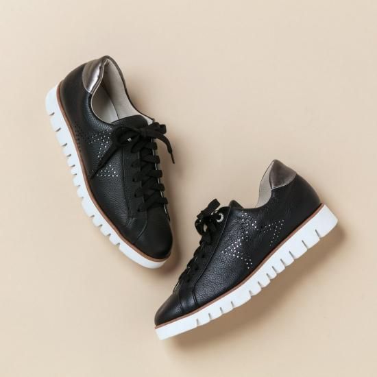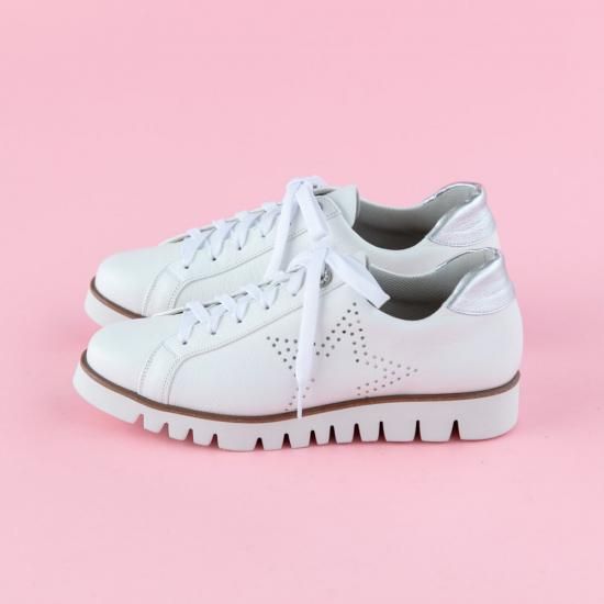 ソールの返りは抜群。サイドの星型パンチングが遊び心もあり、カジュアルになりがちなスニーカーのスタイリングを格上げしてくれます。