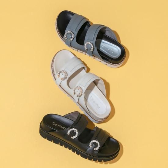 今シーズンマストアイテムな厚底に、大人エレガントなビジューバックルをあしらった旬顔サンダルです。