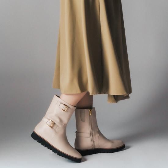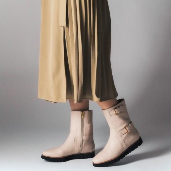 フェミニンなスカートやパンツを合わせたスタイルまで幅広く活躍する「使える」ブーツです。