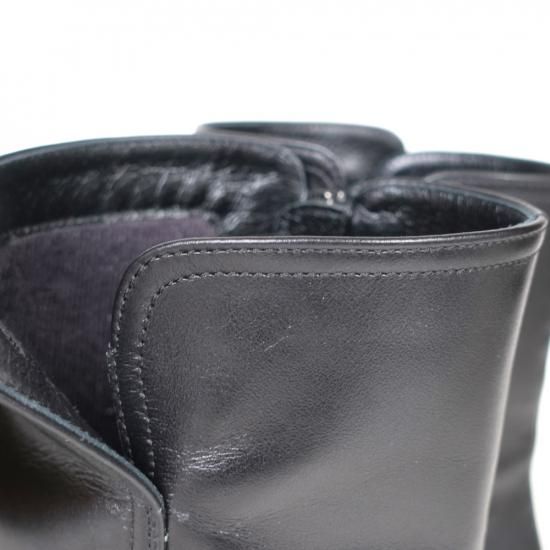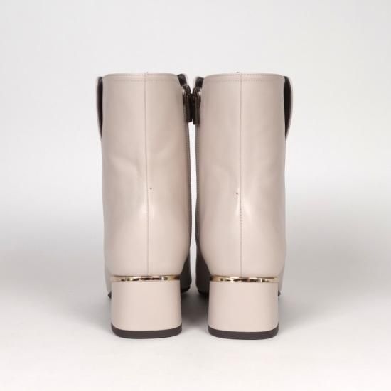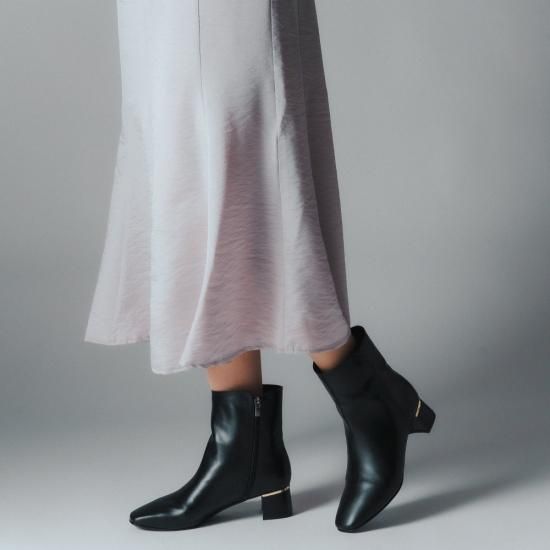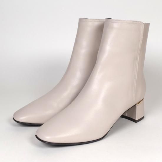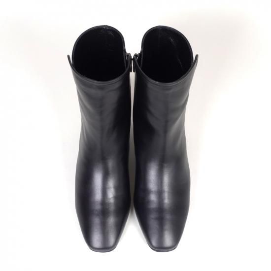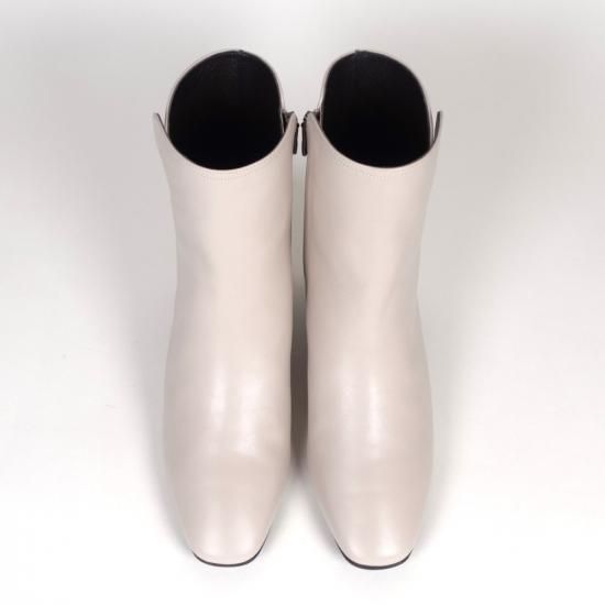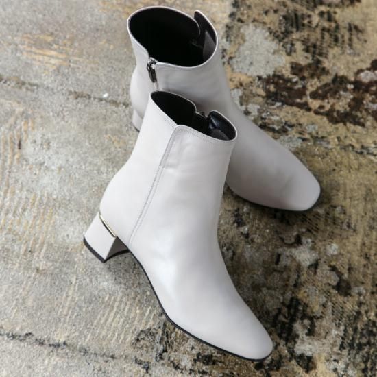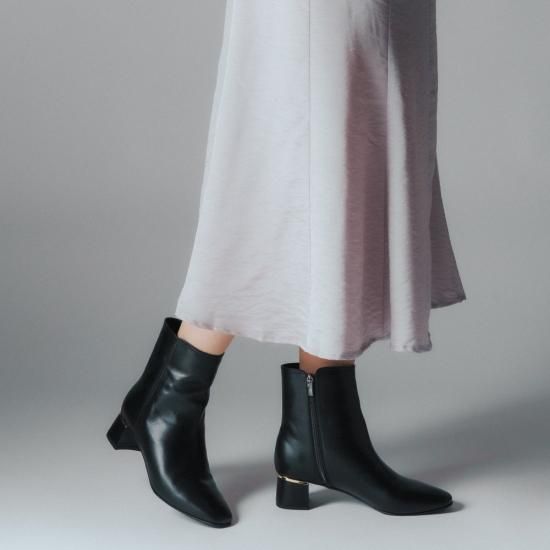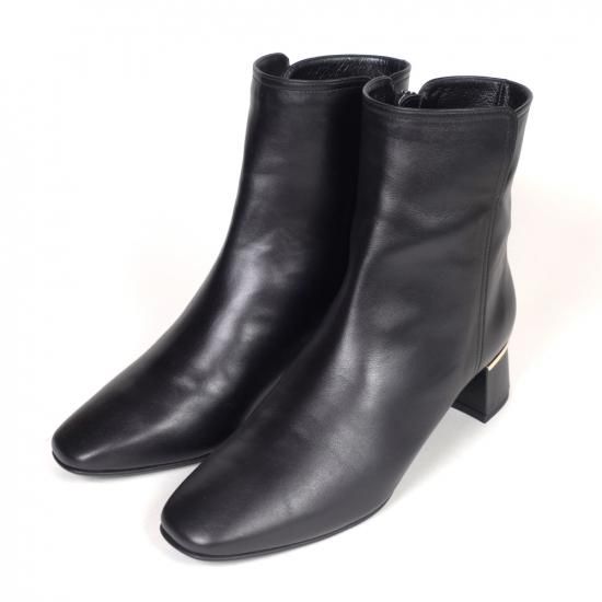 すっきりとシンプルなスクエアトゥショートブーツ。