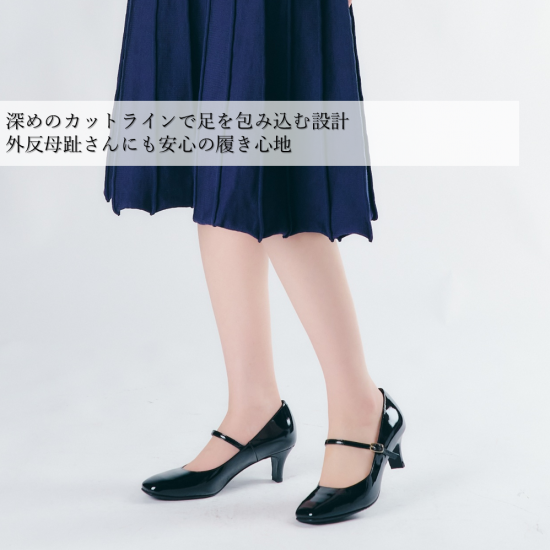 深めのカットラインで足を包み込む設計になっているので外反母趾さんも安心の履き心地。