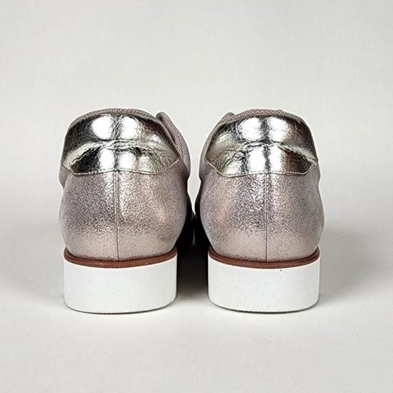 踵部分は艶めきのあるメタリック素材で後ろ姿もしっかりおしゃれ。