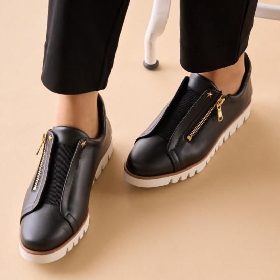 さりげなくあしらわれた星型スタッズにメタリックジップで履くだけで簡単にコーディネートにメリハリが出せる「使える」デザイン。