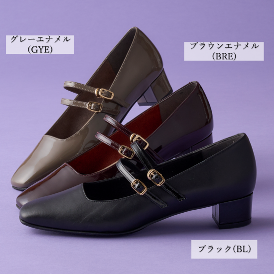 ★【NEW】9223 ダブルストラップ ワイドスクエアトゥパンプス
