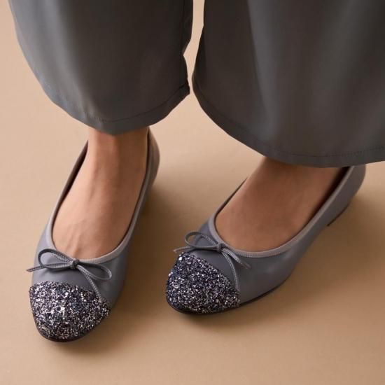 大粒グリッターとのコンビネーションが足元をラグジュアリーに彩るバレエデザイン。