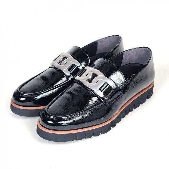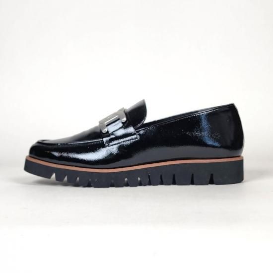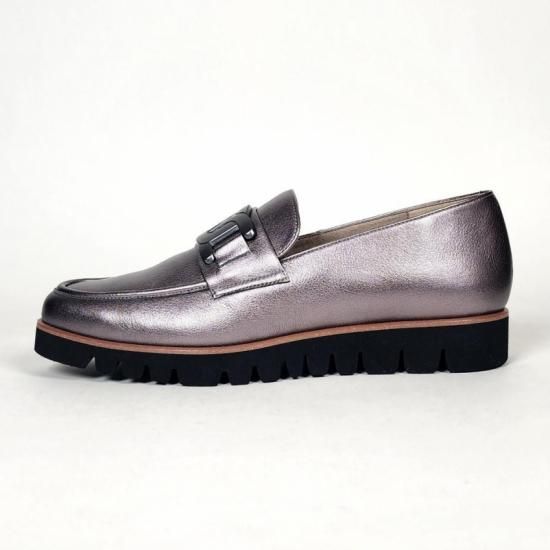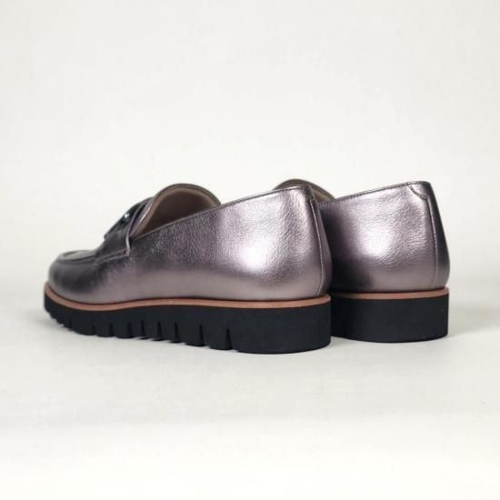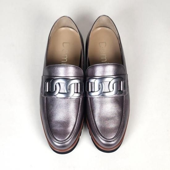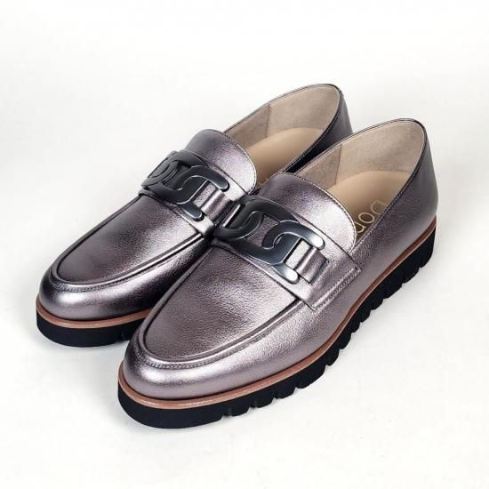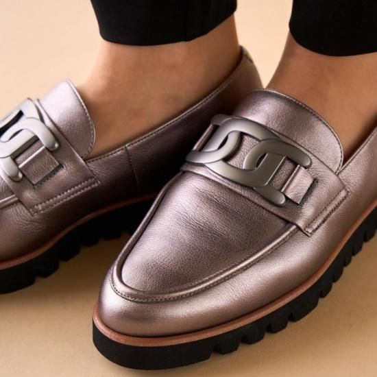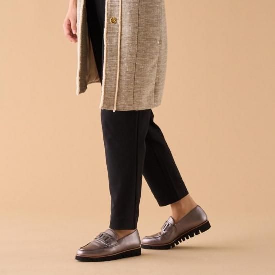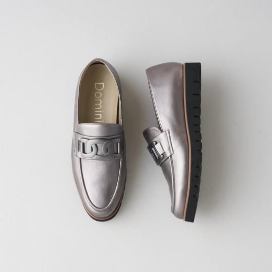 大ぶりのチェーンモチーフバックルがポイントの、大人ローファーです。