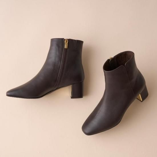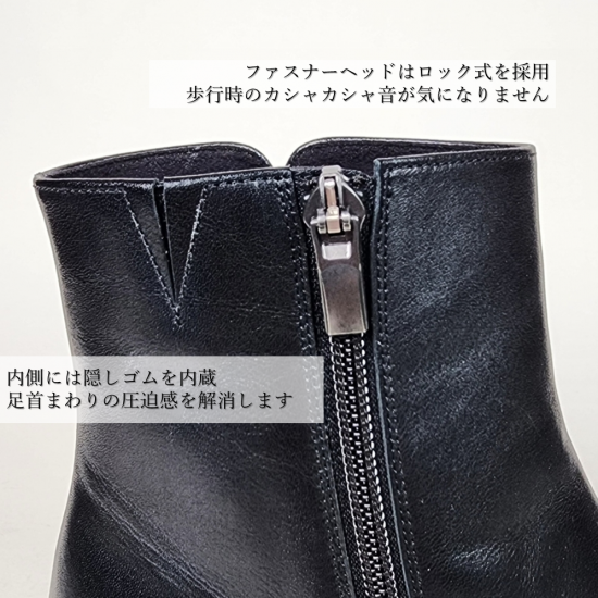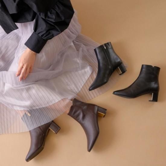サイドのカッティングが脚をキレイに見せてくれるシンプルデザインのショートブーツ。