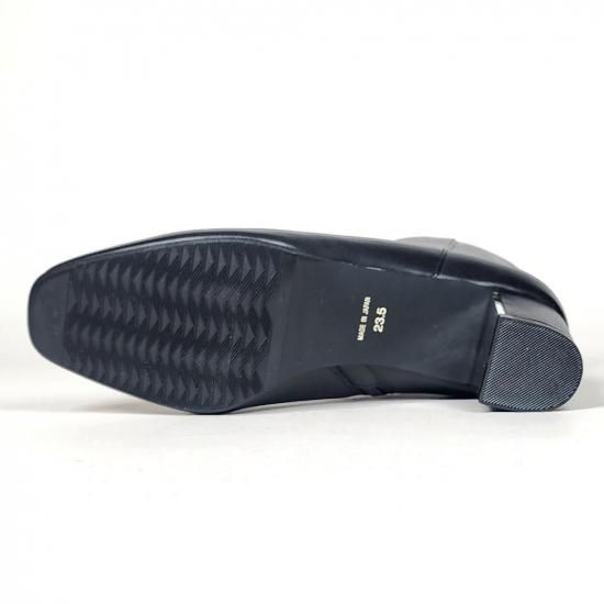 メタリックパーツとのコンビネーションヒールがポイントとなり、シンプルさの中にもエレガントが輝る1足。