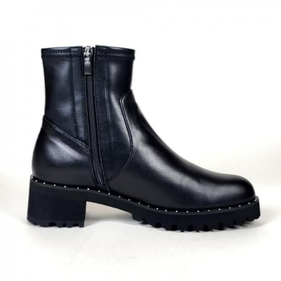 程良いボリュームのあるトラックソールに華奢なチビスタッズがトリミングされたショートブーツ。